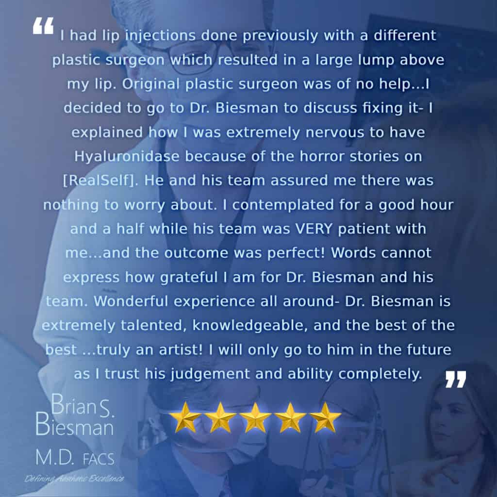 Dr. Biesman and his team emphasize patient comfort, and try to make the filler experience as fun and as enjoyable as possible. This includes ample patient education; when you join Dr. Biesman for fillers, you’ll be given plenty of information about what to expect before, during, and after the procedure, which can help allay any lingering anxieties. Note that Dr. Biesman’s office is available in case of emergency 24/7. Routine questions after hours can be submitted via DM on our Instagram account, @drbiesman.